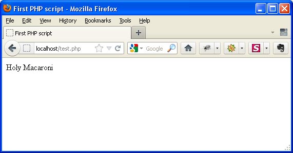 Save the file and preview the result in your browser by visiting http://localhost/test.php You should see something like this